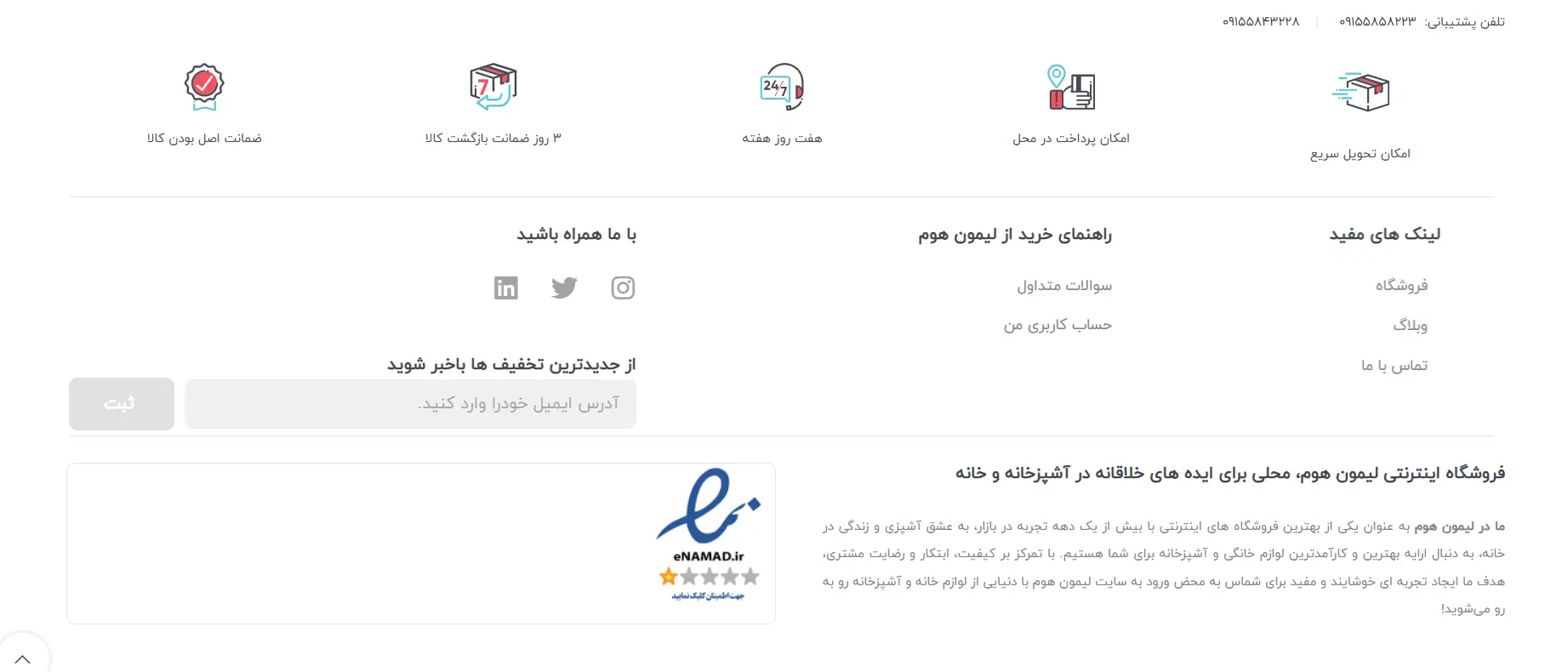 ما مفتخریم که با دریافت اینماد (نماد اعتماد الکترونیکی)، امنیت و اعتماد مشتریان خود را تضمین کردهایم. این نماد نشاندهنده تعهد ما به قوانین تجارت الکترونیک و ارائه خدمات با کیفیت و مطمئن به مشتریان است.